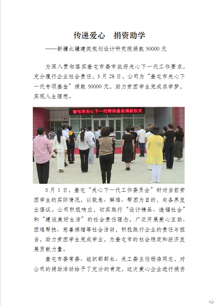 傳遞愛心 捐資助學(xué) ——新疆北疆建筑規(guī)劃設(shè)計(jì)研究院捐款50000元